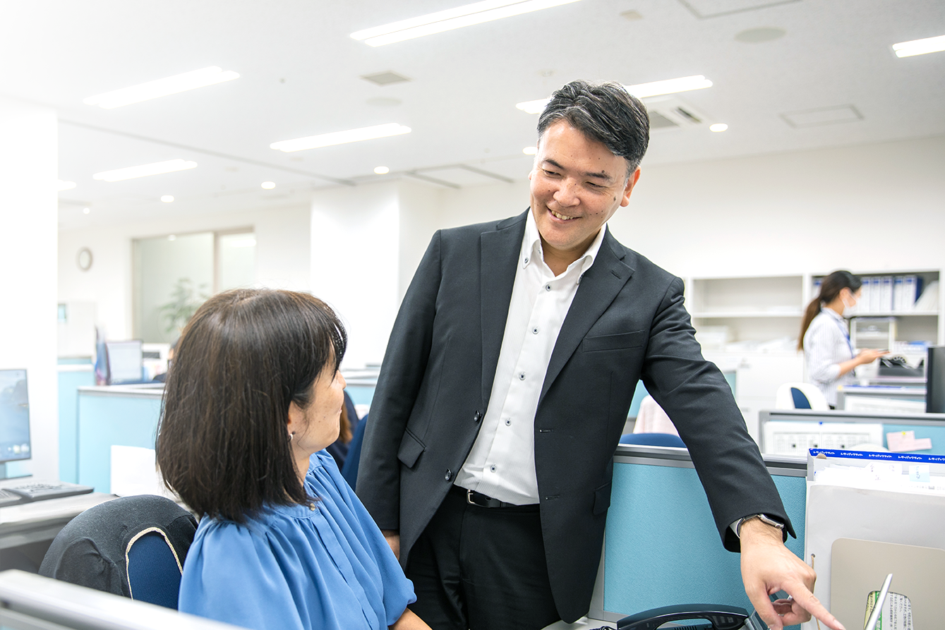 私の主な仕事は会員様をサポートする部署の取りまとめです。取りまとめ役といっても、すべてを一人でやるのではなく、何かあれば先輩や上司に相談しながら進めています。職員によって得意分野も異なります。分野によっては、他の職員の方が詳しかったりもするので、職員みんなで力を合わせて業務に取り組んでいます。
