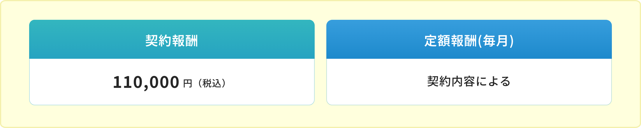 | 契約報酬 | 110,000円(税込) | 財産管理契約を締結する際にいただきます。契約書草案の作成などにかかる費用です。 |