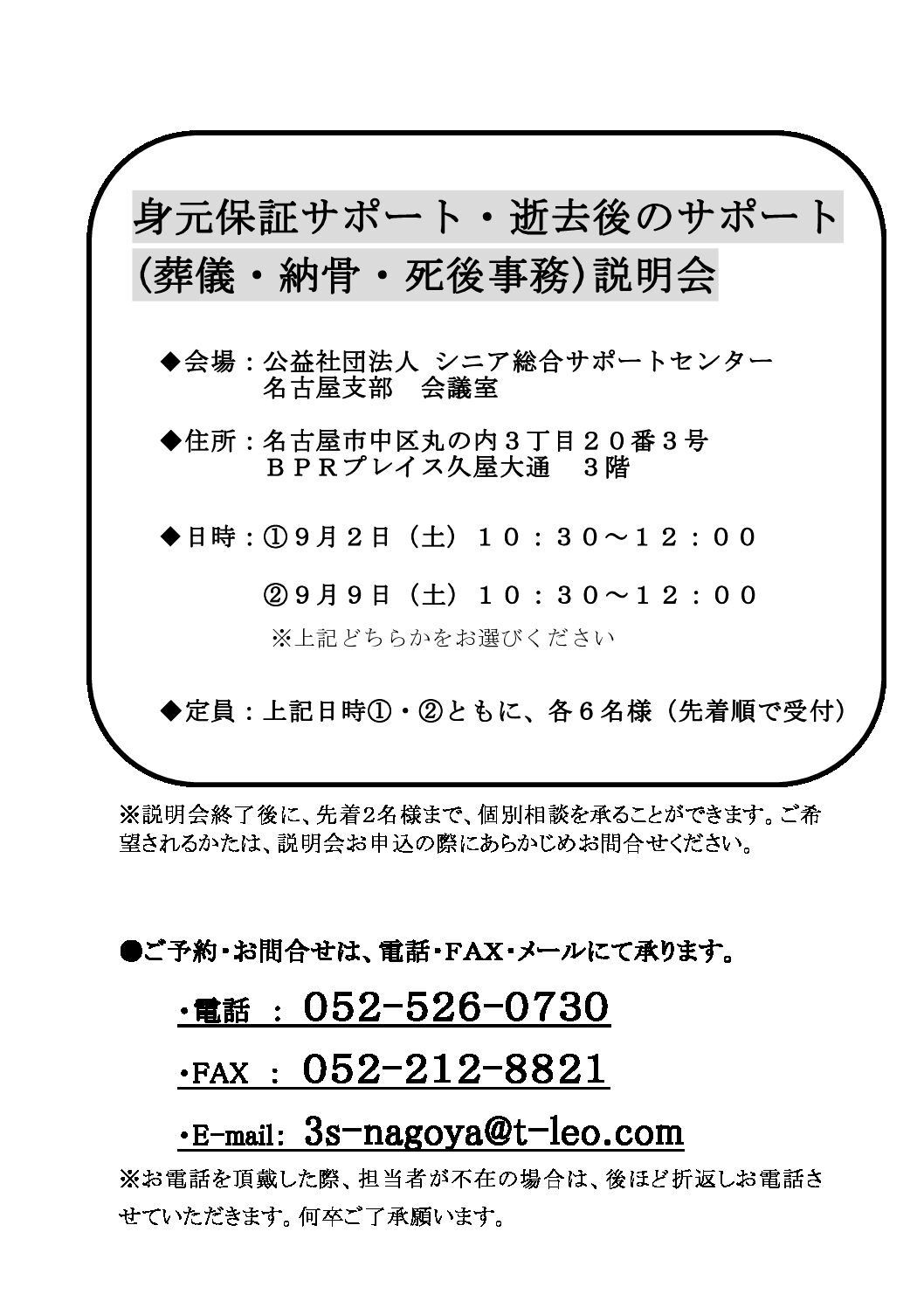 身元保証サポート、逝去後のサポート説明会開催のお知らせ