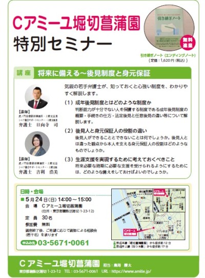 平成27年5月24日(日)に、当法人によるセミナーを開催いたします。 詳しくは下記のご案内をご覧ください。