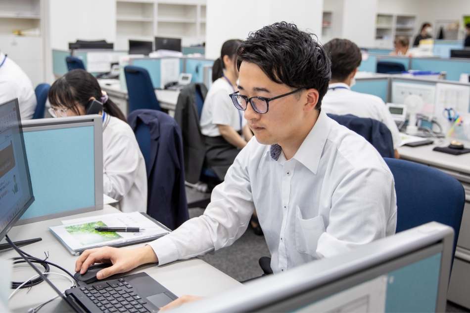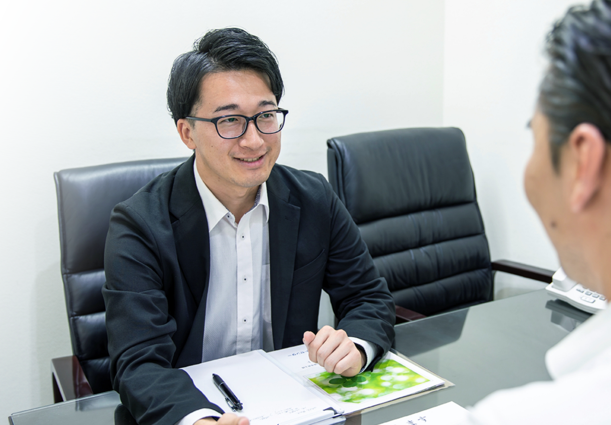 営業として採用されたのですが、事務所内での業務もあり、職員間での会話やコミュニケーションが多いのは、良い意味で当初のイメージと違いました。最初は営業経験がなく不安でしたが、先輩職員の方々からアドバイスをいただきながら、日々業務に取り組んでいます。